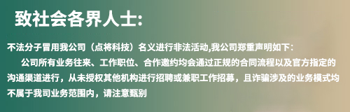 點將(上海)科技股份有限公司近期發現有不法分子冒用點將科技名義,偽造官方文件、資料、社群、APP等手...